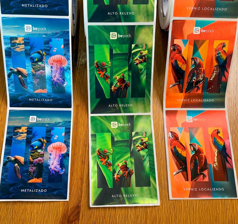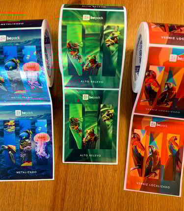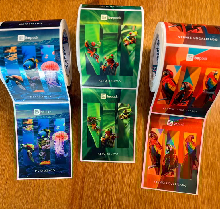 Combinamos tecnologia e materiais de alta qualidade para criar rótulos personalizados que agregam valor e destaque aos seus produtos, incluindo acabamentos especiais como holográfico, alto relevo e verniz localizado.